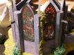 nachdem ich gestern mit Markus telefoniert habe, stelle ich hier mal ein paar "markenfremde" Modellfotos ein. Es gab vor einigen Jahren mal ein ambitioniertes Tabletopspiel ähnlich dem des großen Platzhirsches aus Engelland. Das Spiel hieß Warzone. Als Supplements gab es diverse Boxen mit Kartonmodellen, allesamt prima ausgestattet mit stabilen Pappmodellen, zusätzlichen Zinnfiguren, Regeln etc. Damals, als ich mir das Spiel bzw. das Zubehör gekauft habe, war der Verlag schon nicht mehr am Markt. Deshalb sind die von mir gebauten Modelle wohl außer Konkurrenz zu betrachten. Das abgebildete Gebäude ist die sogenannte "Kathedrale der Bruderschaft". Ich habe den Bogen etwas "gesupert", indem ich die bunten Glasfenster des Gebäudes durch im Digitaldruck produzierte Folien ersetzt habe und dann zusätzlich die Bleieinfassungen des Glases als Laserteile hinzufügte. Diese Einfassungen habe ich im MacromediaFreeHand nachgezeichnet und als EPS-Datei auf unseren Laser geschickt und aus 0,8 mm durchgefärbter schwarzer Pappe ausgelasert. Danach erfolgte per Trockenmalmethode die farbliche Anpassung an den Rest des Modells. Geklebt wurden die Laserteile mit dem unsichtbarsten Kleber der Welt: MicroCrystalClear. Die Gargoylen stammen aus dem Bogen eines anderen Herstellers aus Amiland.