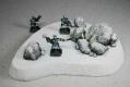 RE: Hügelgelände Winterfeldzug - Rescrus - 23.01.2012 Also der Hügel is gut, auch wenn ich abgerundete Ecken bevorzuge. Mein Tipp für die abgerundeten Ecken ist ein Holzleim-Modellsand-Gemisch, welches man auf den Hügel streicht: sorgt für Struktur und die Minis bleiben stehen bis zum nem gewissen Steigungswinkel (auch Zinn). Rescrus RE: Hügelgelände Winterfeldzug - Ben Turbo - 23.01.2012 (23.01.2012, 12:39)Niceyard schrieb: zu Old School, zu billig, zu leicht, nicht rund genug, glitzern nicht ... sinngemäß schrieb:Preis zu hoch, Natron zu schwer, zuviel Arbeit Und wenn wir dir dann recht geben und (ausnahmslos) gute Vorschläge machen, spielst du die Wurst? ![]() Aber hey - immerhin ist der Hügel weder aus Filzlappen, noch aus Papier! ![]() RE: Hügelgelände Winterfeldzug - Niceyard - 23.01.2012 Ich wollte euch halt am Bauprozess teilhaben lassen und hatte gehofft, dass jemand ein paar gute Tipps auf Lager hat, wie man einfache, preiswerte und gutaussehende Winterhügel baut. Aber inzwischen bin ich ganz gut weitergekommen und mache das in einer anderen Technik, die schneller, einfacher, leichter und deutlich preiswerter ist (nur ein Drittel so teuer). Und obendrein finde ich, dass die neuen Hügel auch noch besser aussehen und für's Spiel interessanter sind. Zwei neue kleine Hügel sind immerhin schon fertig und zwei weitere im Bau. Ich weiß nicht, wieviele ich noch bis zum Winterfeldzug fertig bekomme. Was gäbe es denn noch so, was auf einem Wintertisch stehen könnte? Habt ihr Wünsche? RE: Hügelgelände Winterfeldzug - Ben Turbo - 23.01.2012 Eisflächen? Hat jemand mal aus dünnem Plastik oder Plexiglas gemacht. Untergrund dunkelblau/grün grundieren, einzelne Silikon oder Heißkleber Kleckse drauf und dann das Plexiglas drauf. Dadurch sieht es unter der Eisschicht nach Luftblasen aus. Die Ränder dann ganz normal besanden/einschneien. RE: Hügelgelände Winterfeldzug - Niceyard - 24.01.2012 Welche spieltechnische Eigenschaft sollen die haben? RE: Hügelgelände Winterfeldzug - Ben Turbo - 24.01.2012 Vielleicht so ähnlich wie Sumpf - wer zu schwer ist kann einbrechen. Oder wenn eine Flächenwaffe die Eisfläche trifft, kann sie aufbrechen und zu unpassierbarem Gelände oder Wasser werden. RE: Hügelgelände Winterfeldzug - Gregorius - 24.01.2012 Naja, wie ein Chef so sagt: " Schwer? Mit ein bißchen gutem Willen ist das gar kein Problem - also machen Sie mal!" Wenn es schon bei den Hügeln nichts wurde: Läßt es sich einrichten dass wenigstens die Eisflächen glitzern? ![]() RE: Hügelgelände Winterfeldzug - Niceyard - 24.01.2012 Schnee glitzert nur, wenn die Sonne scheint. Im Jahr 2222 gibt es nur Smog und Wolken. Die Sonne kennt man nur aus alten Filmen. RE: Hügelgelände Winterfeldzug - Niceyard - 29.01.2012 Auf vielfachen Wunsch eines einzelnen (der leider nicht aufs Turnier kommen kann) zeige ich nun doch einen der neu gebauten Hügel. Das ist jetzt die sehr preiswerte Version aus 20mm-Styroporplatten, Styroporkleber und Wandstreichfarbe. Der Kleber lässt sich wie Spachtelmasse verarbeiten, trocknet deutlich schneller als Weißleim und verliert dabei kaum an Volumen. Bei den Schneeflächen habe ich den Styroporkleber mit einem Borstenpinsel aufgetupft, um eine körnige Oberfläche zu erhalten, bei den Felsbrocken habe ich den Kleber aufgestrichen, um eine riefenzerfurchte steinartige Oberfläche zu bekommen. Die Bemalung erfolgte mit Eisblau, Weiß, verschiedenen Grautönen, Olivgrün und Erdbraun, zum Schluss nochmal Weiß. Wer Stufenhügel grauenvoll findet, soll einfach schnell wegschauen. Ich hoffe, dass sie sich beim anstehenden Winterfeldzug als spieltaugliches und taktisch interessantes Gelände bewähren. RE: Hügelgelände Winterfeldzug - Ben Turbo - 29.01.2012 Die Hügel hab ich mir nicht angesehen ![]() |