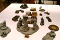 Auf jedem Tisch waren in der Mitte und rechts und links drei Zielobjekte (Holzöfen, Holzstapel, Frachtkisten),
