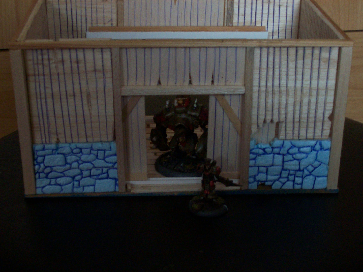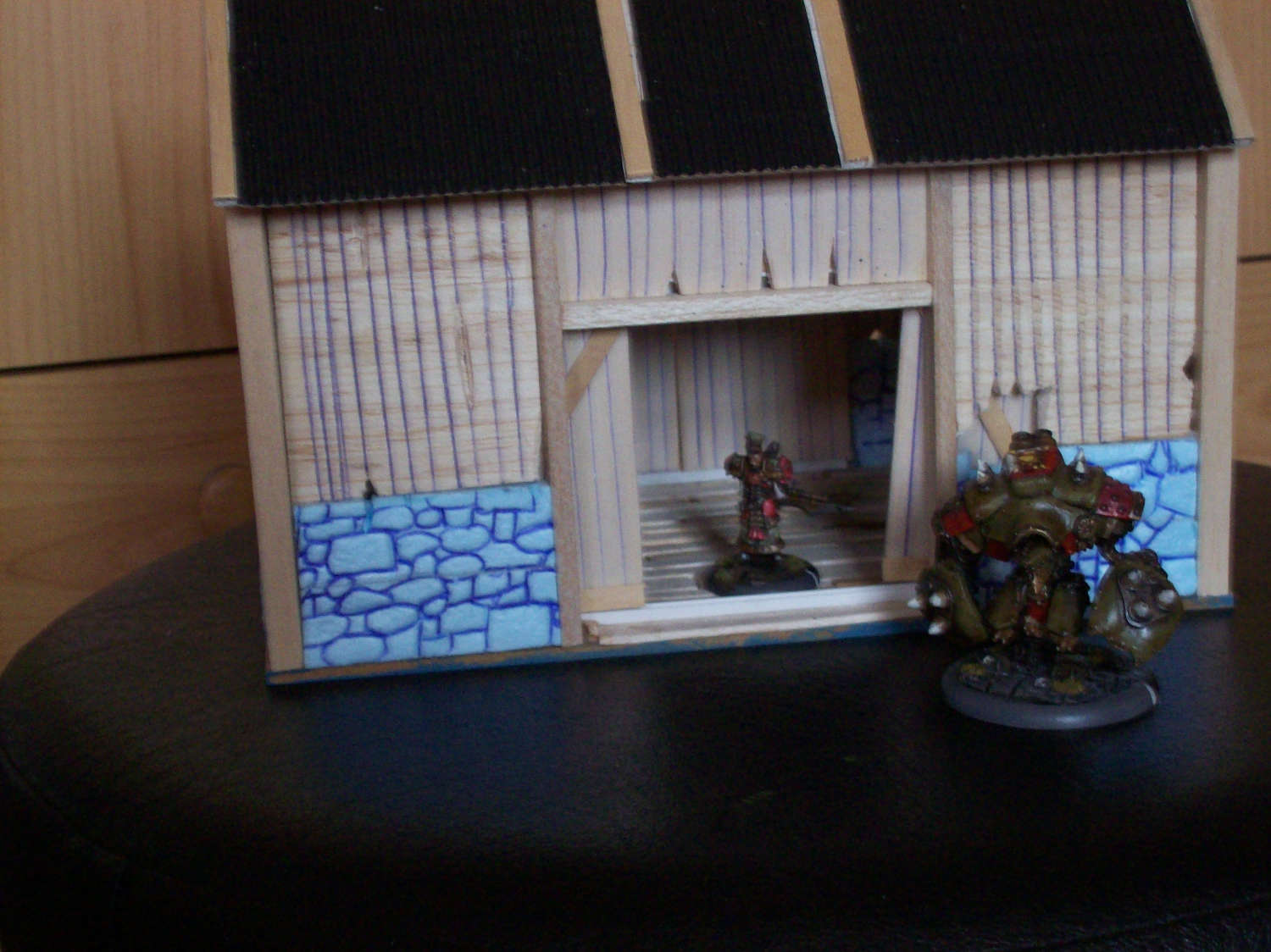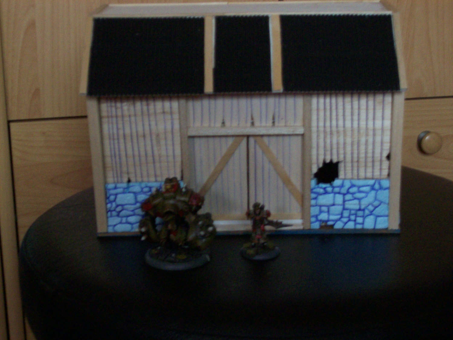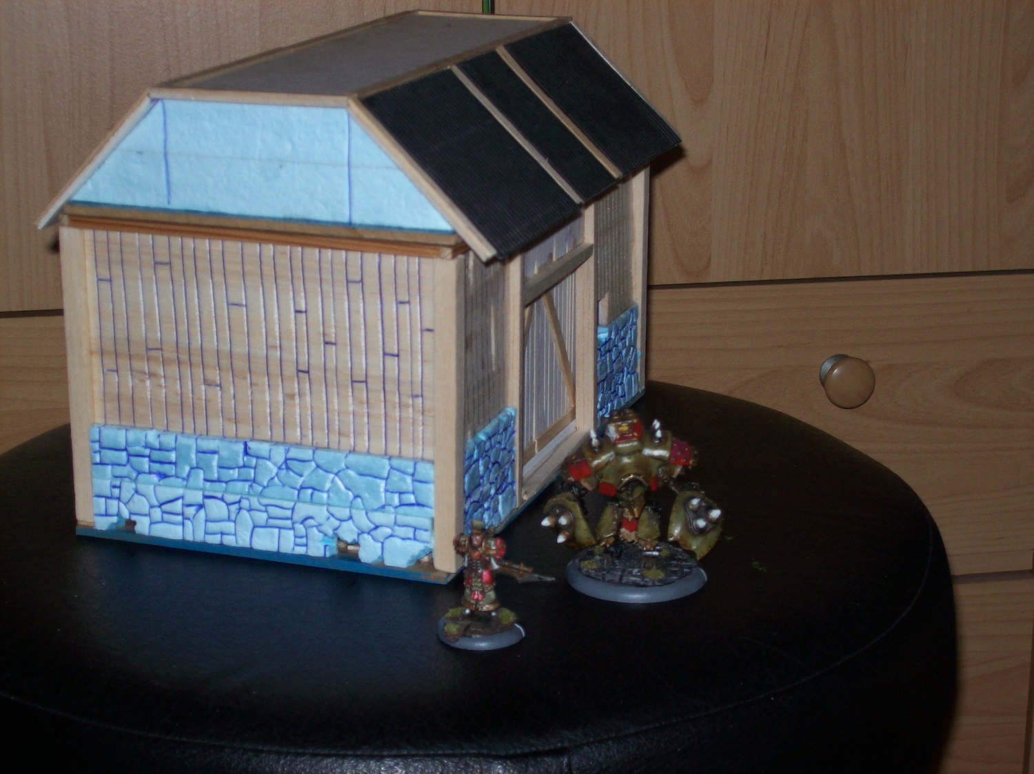 RE: Noisys Gelände - Noisy - 21.03.2013 Für ein Scenario für Warmachine hab ich eine Scheune gebaut. Material war Styrodur, Balsaholz, Wellpappe und eine Faserplatte als Bodenplatte. Anbei sind zwei Miniaturen als Größenvergleich. Das Dach ist abnehmbar und die Tore können geöffnet oder geschlossen werden. Am unbemalten Modell kann man ganz gut sehen wie es gebaut wurde, mittlerweile ist es auch schon fertig bemalt, davon hab ich bloss noch keine Fotos gemacht. RE: Noisys Gelände - Noisy - 21.03.2013 (21.03.2013, 22:44)Niceyard schrieb: Soviel Styrodur ist da jetzt aber nicht dran. Ist dir schon der Heizdrat gerissen? Das Gebäude war noch aus der Pre-Proxxon Phase