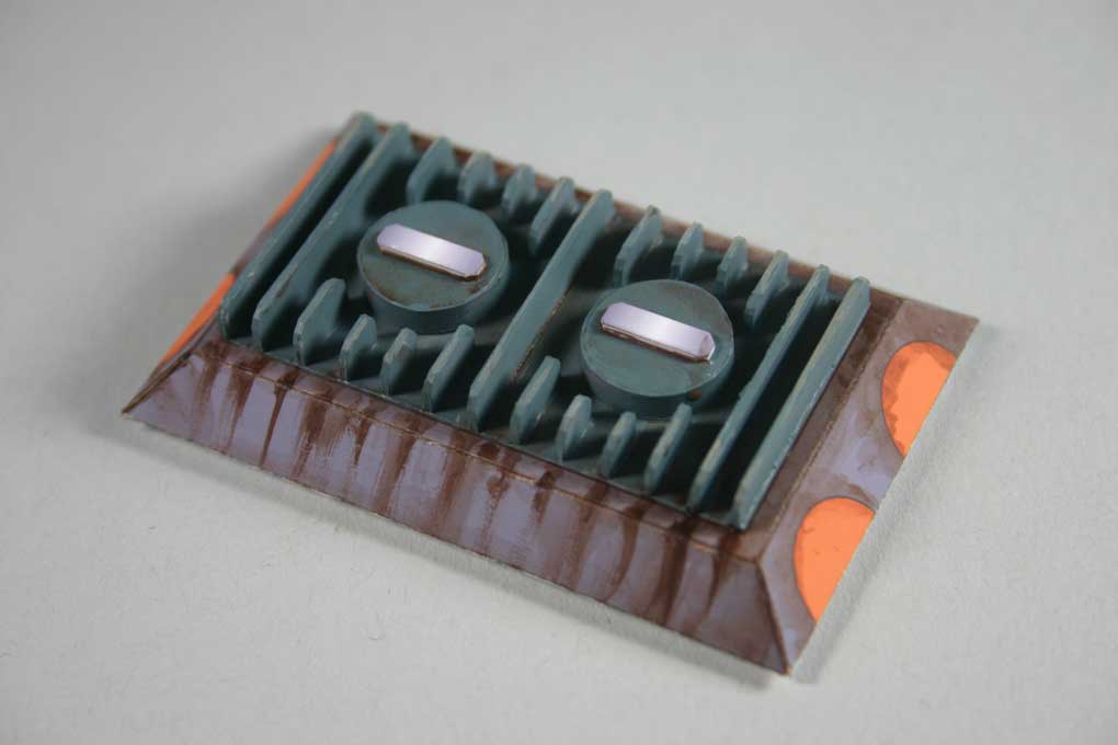Im Bild kann man sehen, dass die Behälter und die Kühlrippen vollständig in grau bemalt wurden.