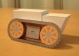 Hier seht ihr den ersten Probebau des neuen Transporters – Ladefläche mit Kabine, Container und die Flanke eines der Kettenlaufwerke; letzteres mit Binnenzeichnung. Die Antriebseinheit (der graue Kasten zwischen den Rädern) habe ich vom alten Transporter übernommen.