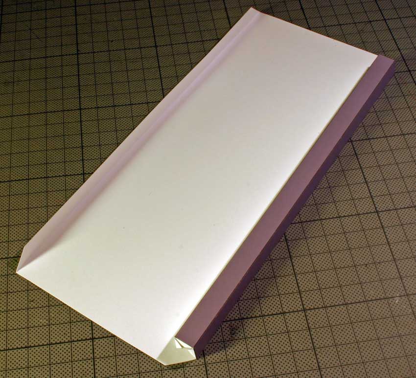 Die vordere Hälfte der Flügel hat eine 3mm-Klebelasche, die ungeknickt gegen die Seite