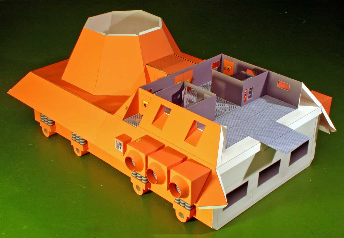 the big hole in the center through which the RON-Station will loom, and the three big holes for the