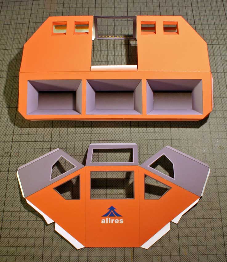 At last the side tabs of the crawlers sides are glued to the outside of the front and rear.