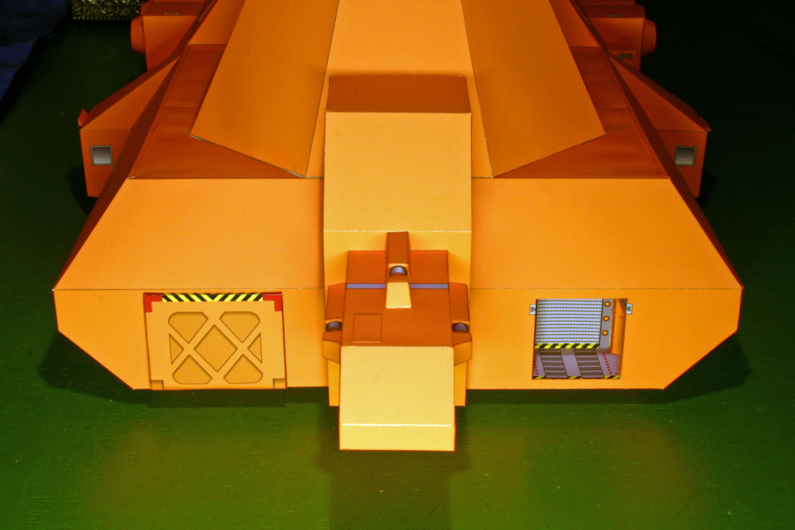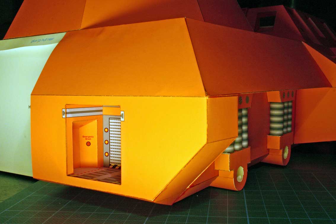 Der komplette Verladetunnel wird rückseitig an die Öffnung der Heckseite geklebt.