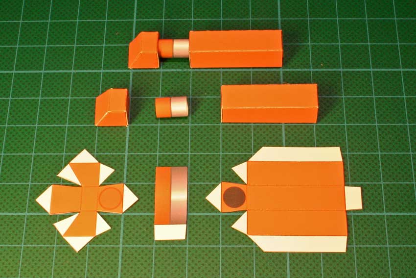 Attach the three small parts to the cut out and grooved body. Then build the body and glue
