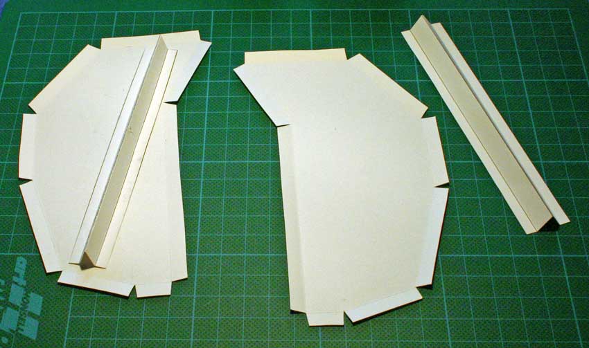 Die drei Zusatzteile werden auf den fertig ausgeschnittenen und gerillten Körper