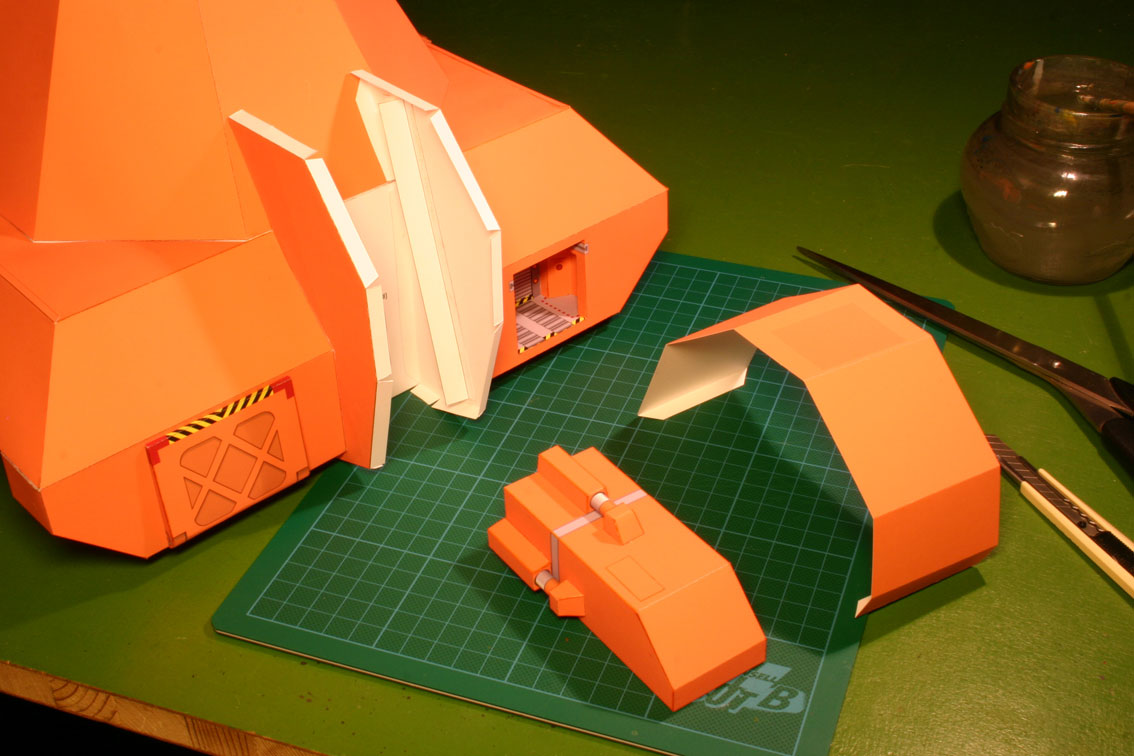 The lower glue tabs and the backside of the loading gate is glued to the hull firstly.
