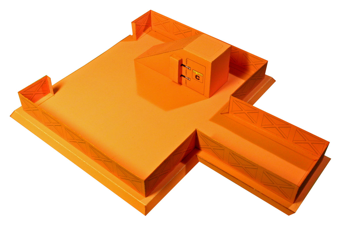 The ramp is to be builded in closed state und is glued to the