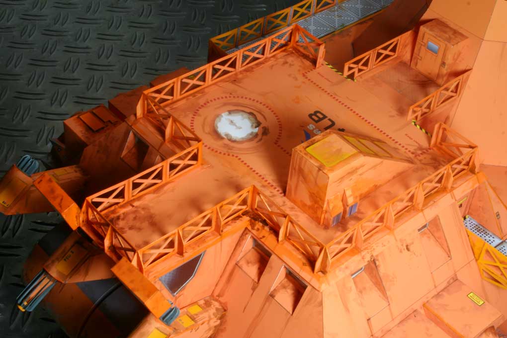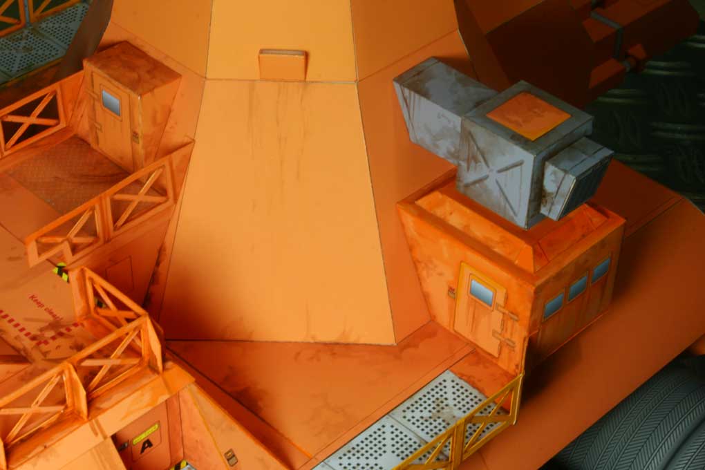 Once the air station is glued, the air way can be glued onto the center of the roof of the air station and the left side of the lower tower.