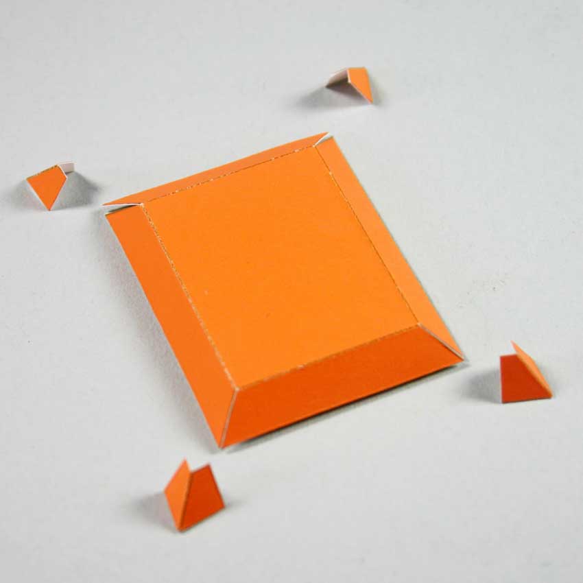 Es wird an den Ecken mit äußeren Klebelaschen versehen wie im Bild ersichtlich.