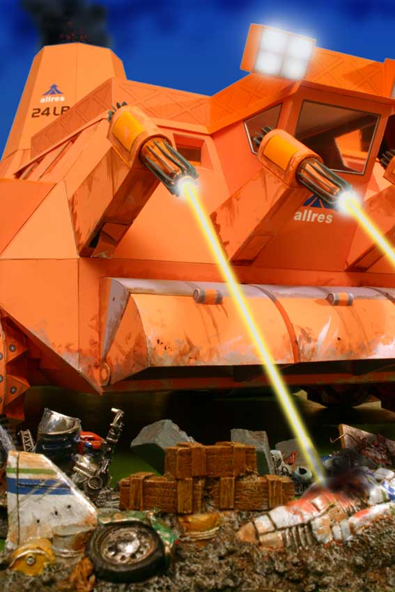 The cutting laser was painted with different shades of orange, with brown and silver.