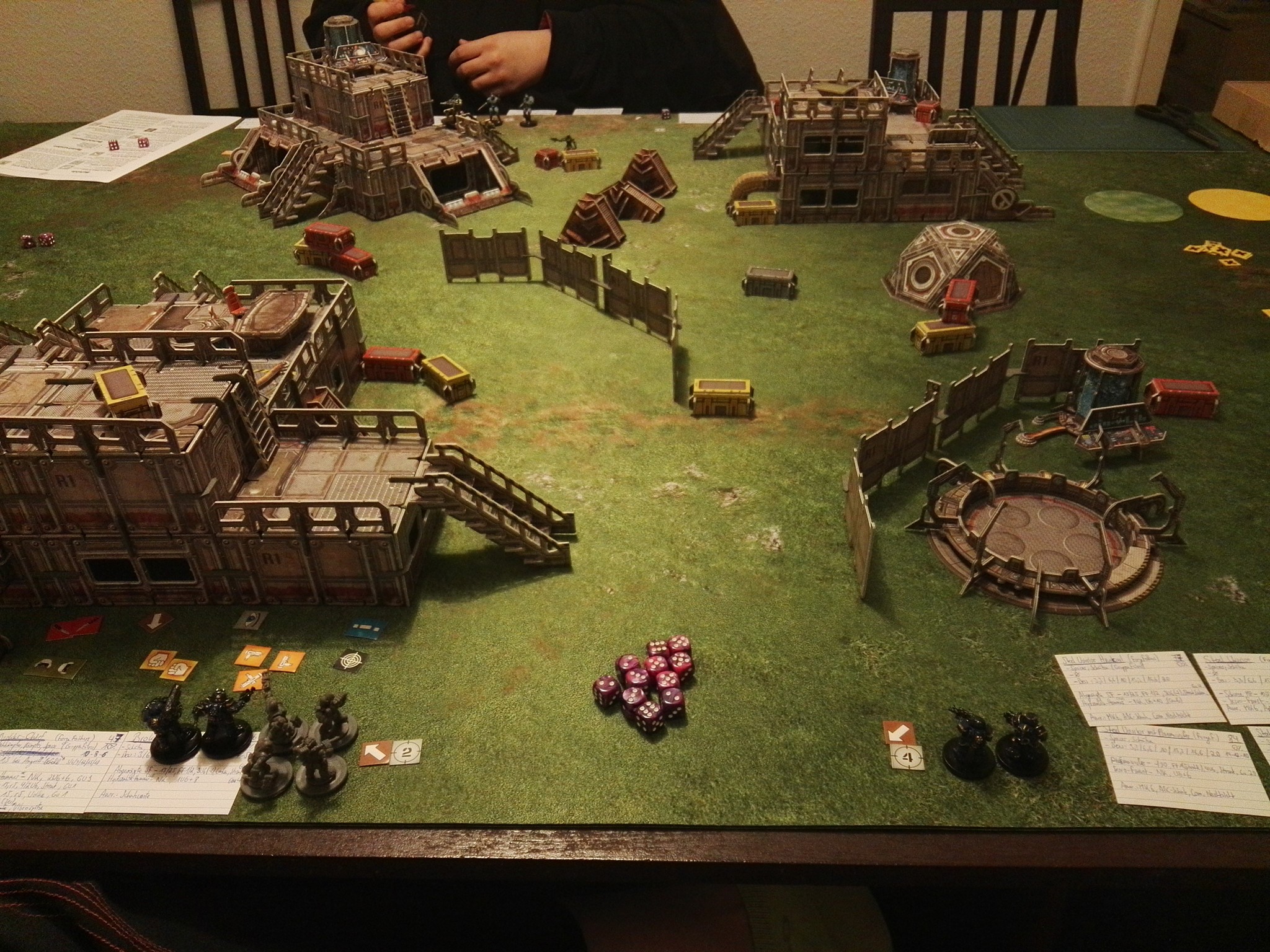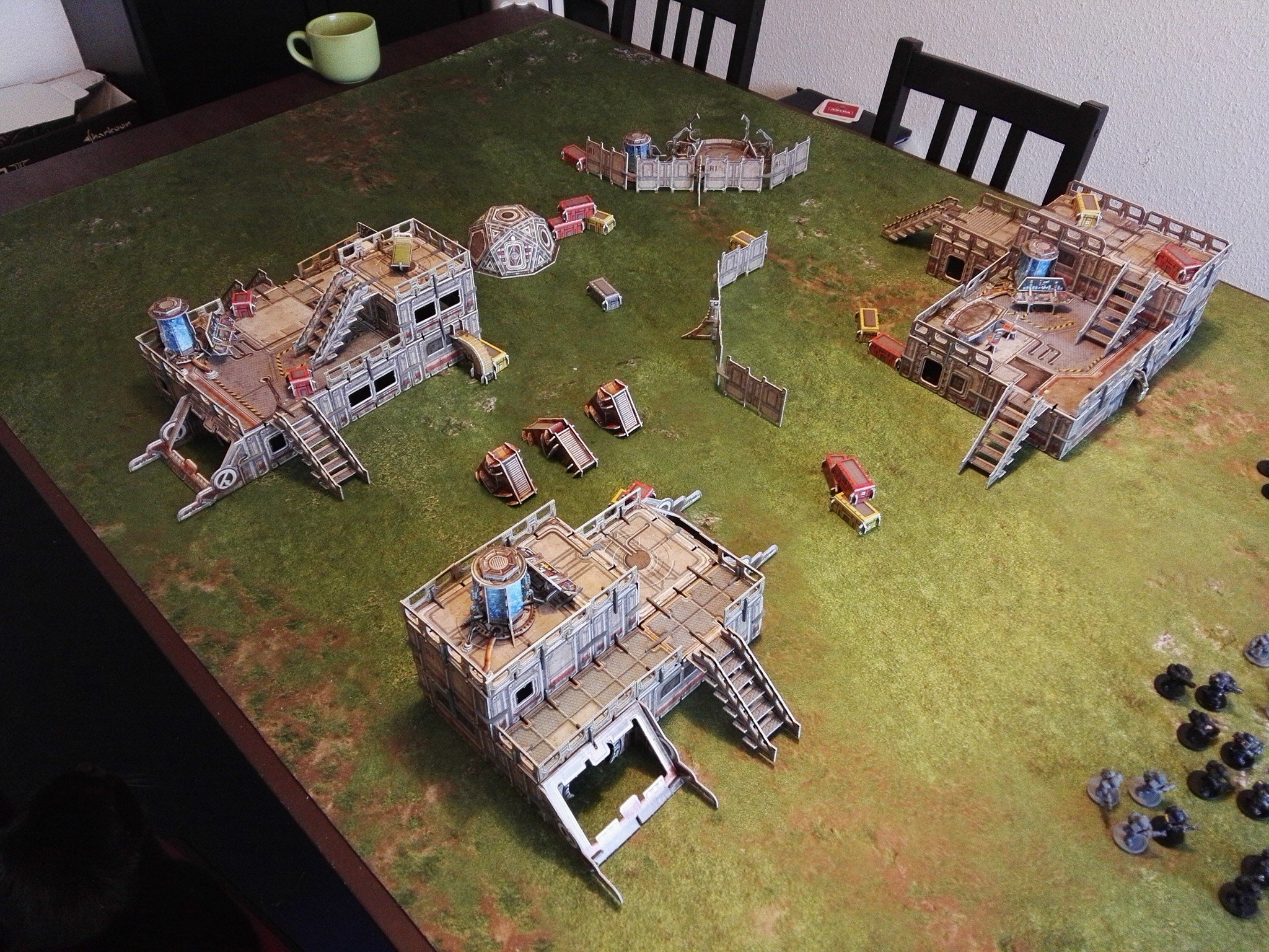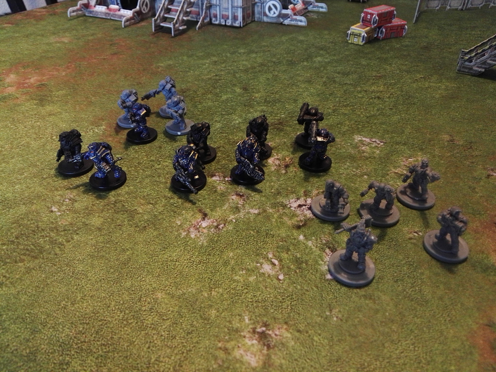 So, meine ersten Truppen stehen soweit... Ein paar Enforcers (die linken drei Truppen) und ein paar Forge Fathers (die rechten zwei), beide durch Einheiten von Mantic morgen auf dem Feld. Das Spielfeld baue ich nach der Schicht auf, wonach dann noch ein paar Fotos folgen werden