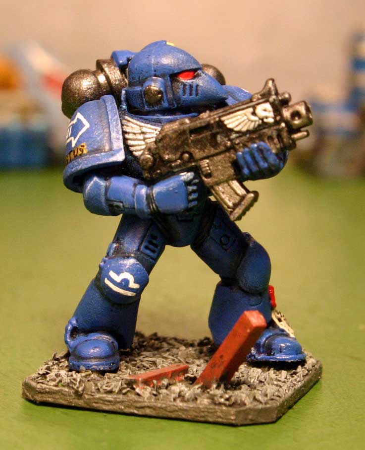 Der Taktische Marine wurde klassisch trocken gebürstet und mit verschiedenen Zeichen versehen. Ebenfalls kein großes Ding. Vielleicht bekomme ich tatsächlich irgendwann mal eine komplette Kompanie zusammen.