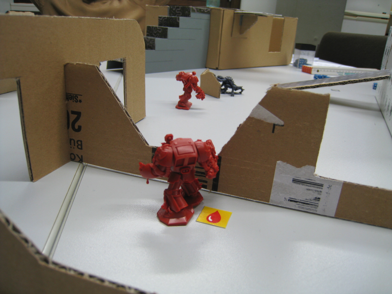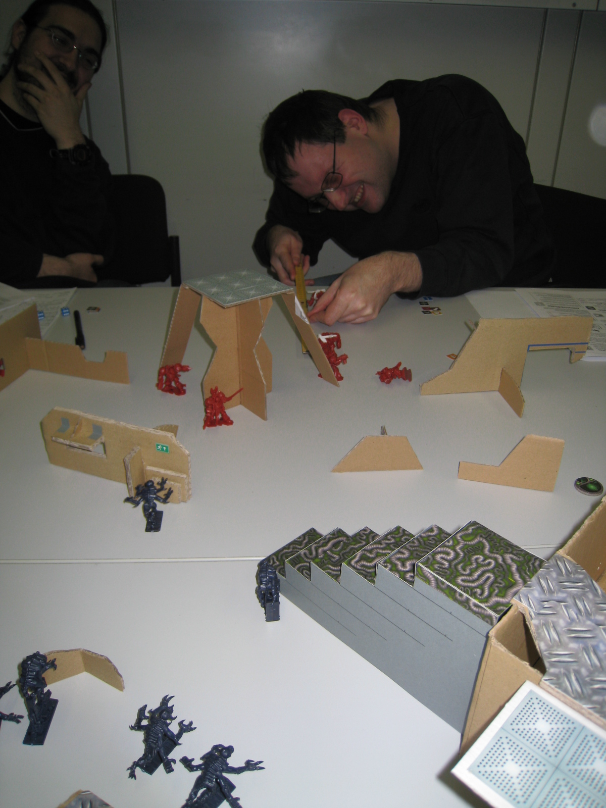 Sicher, sicher. Am Anfang war es noch ein wenig härter. Wenn du dir die ersten Bilder genauer ansiehst, dann war das Geländer einen Tick mehr verwinkelt. Sagen wir zwischen den einzelnen Deckungsmöglichkeiten lagne 15cm bis 20cm. Das konnten die Aliens mit ihren 30cm Bewegungsweite gut ausnutzen.